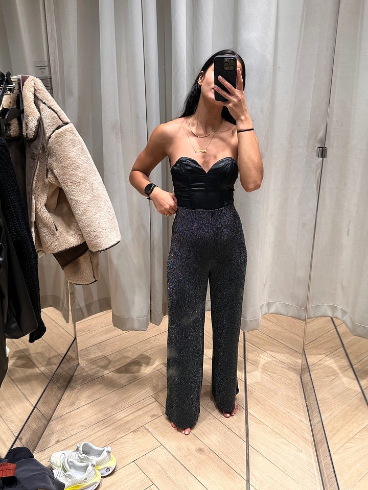 This week we are journeying to H&M and staying on the party wear given upcoming Christmas parties! I loved these pants because it’s most definitely something different for me but it just added that sparkle I wanted. I paired it up with a strapless crop top and a faux leather jacket to complete the look.